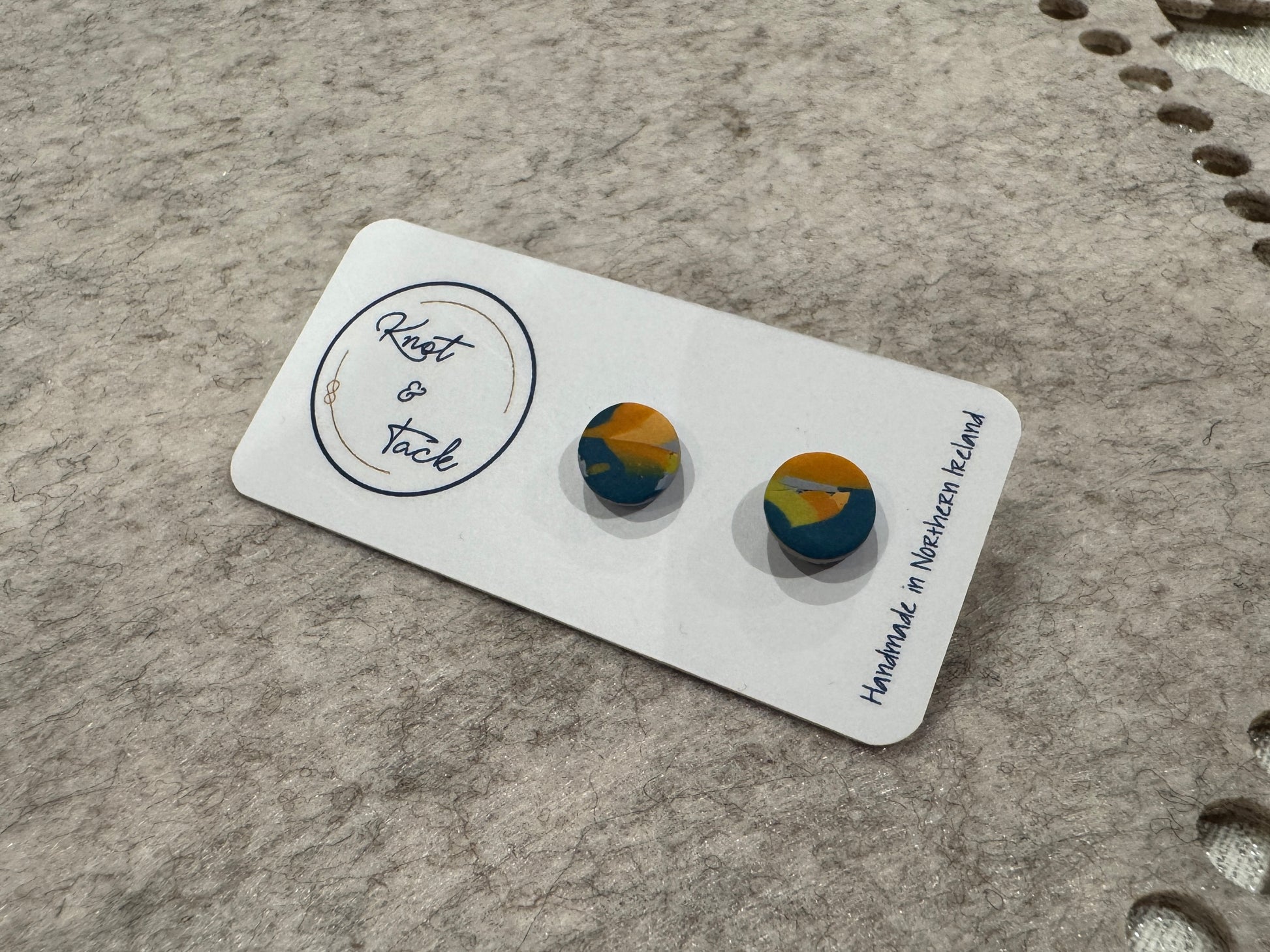 Blue & Orange Marble Stud Earrings